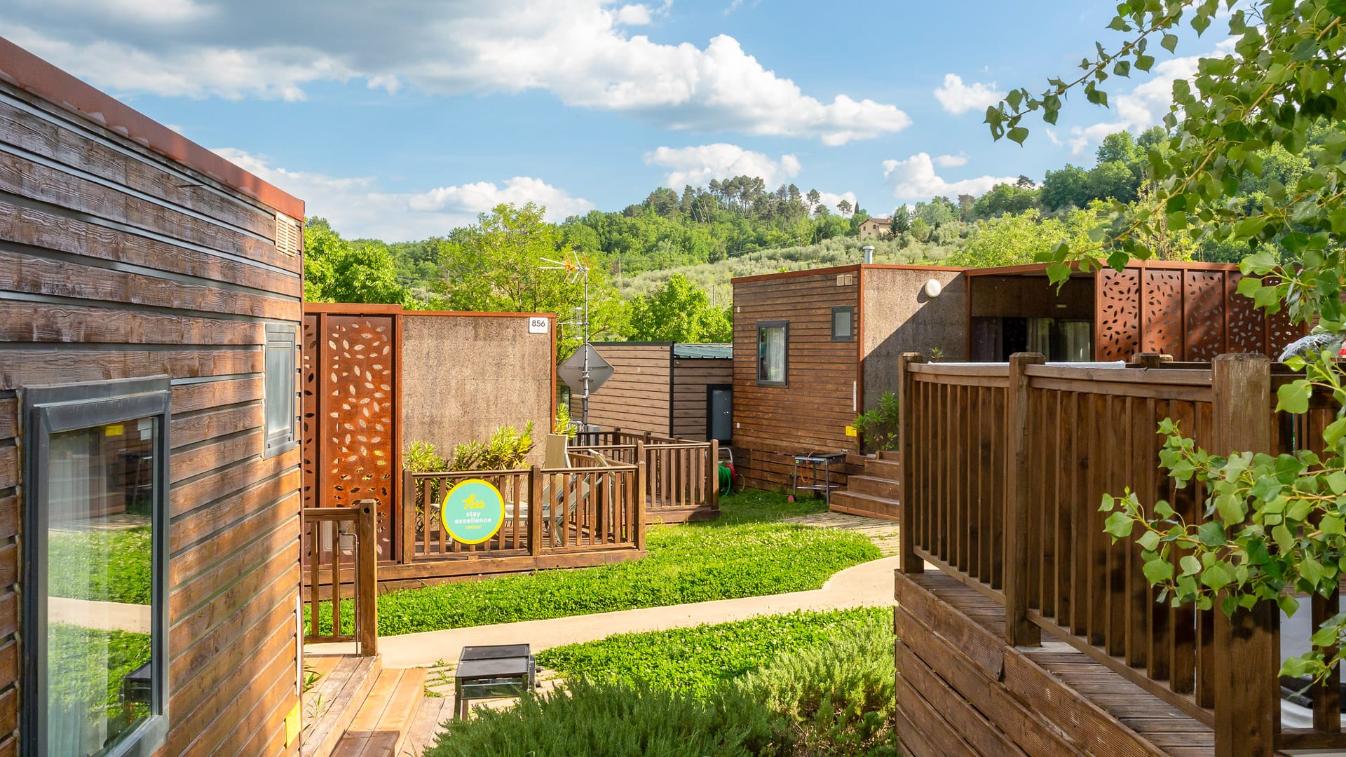 The hu Norcenni Girasole village is a campsite located in the heart of the Tuscan countryside, southwest of Florence and a few kilometres from the Chianti Hills. Guests can choose from a variety of comfortable accommodation options; book a mobile home, glamping tent or book a pitch for your own tent, campervan or caravan.