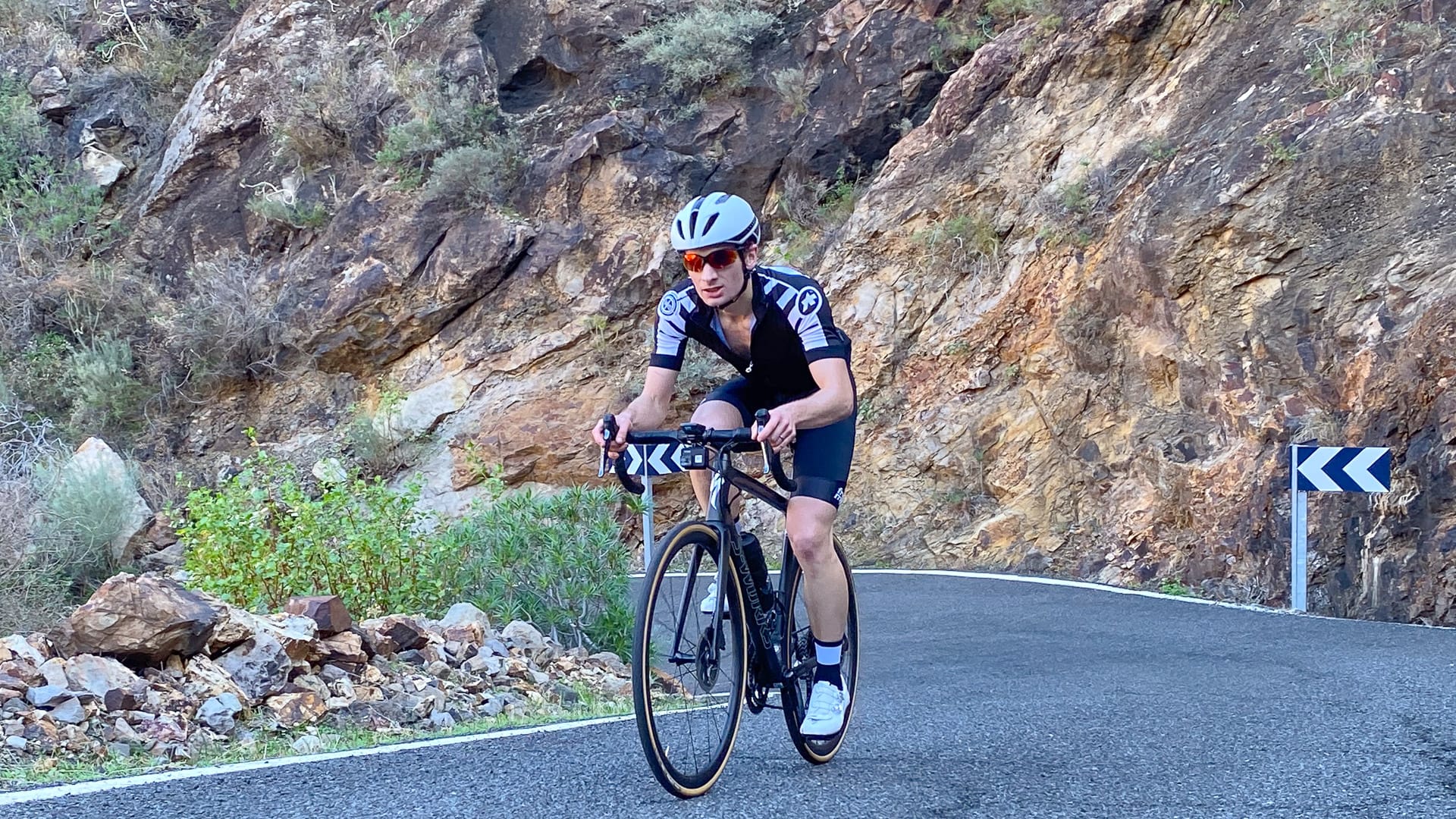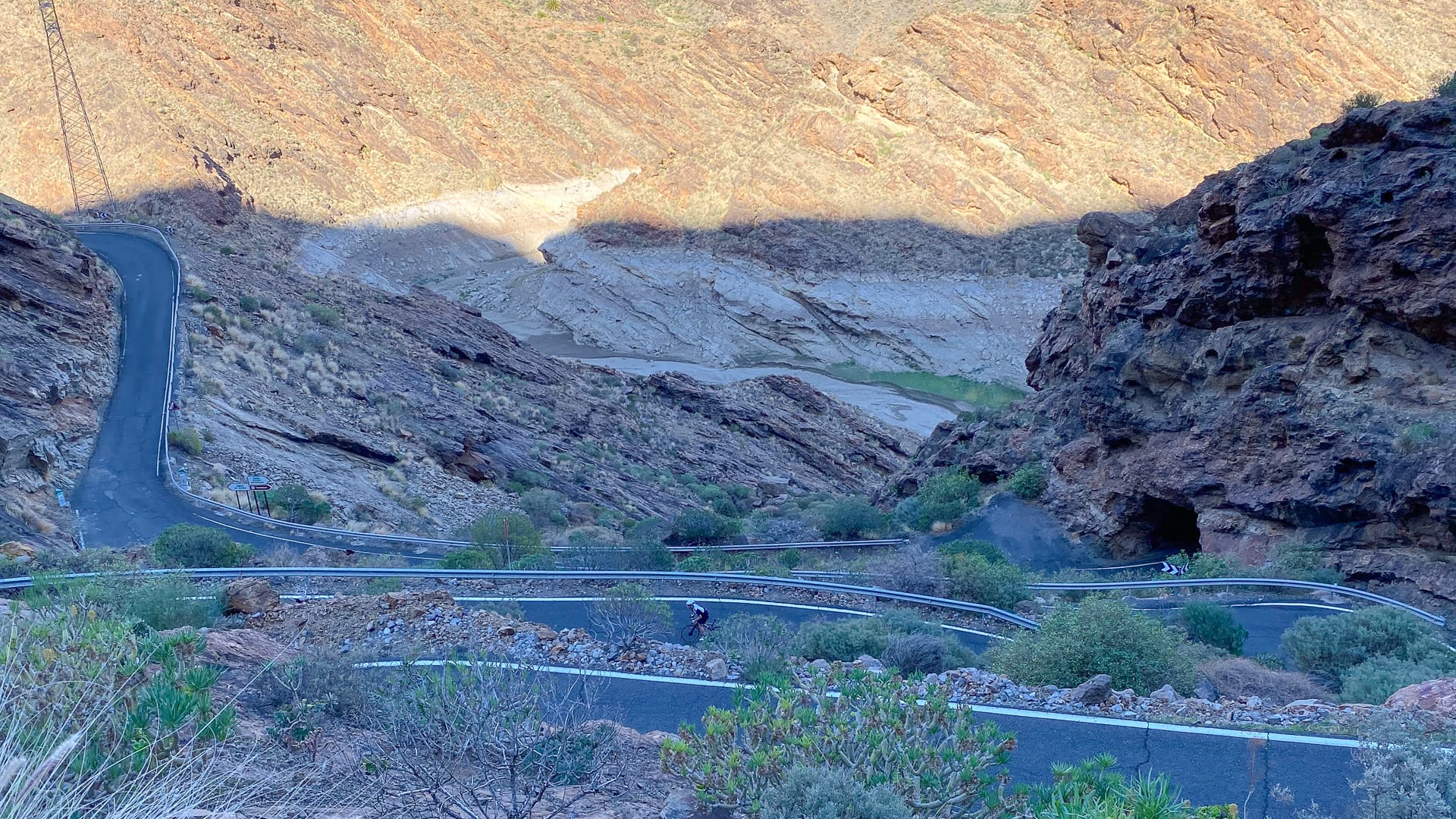 Gradients start off relaxed out of San Nicolas, but you’re soon dealing with kick ups into the double digits, especially through the two short but crazy hairpin sections that rear up alarmingly above you like a wall. The second set spits you out at the top of the Presa del Parrallilo dam and is the final big obstacle before the Valley of the Tears (VOTT) junction.