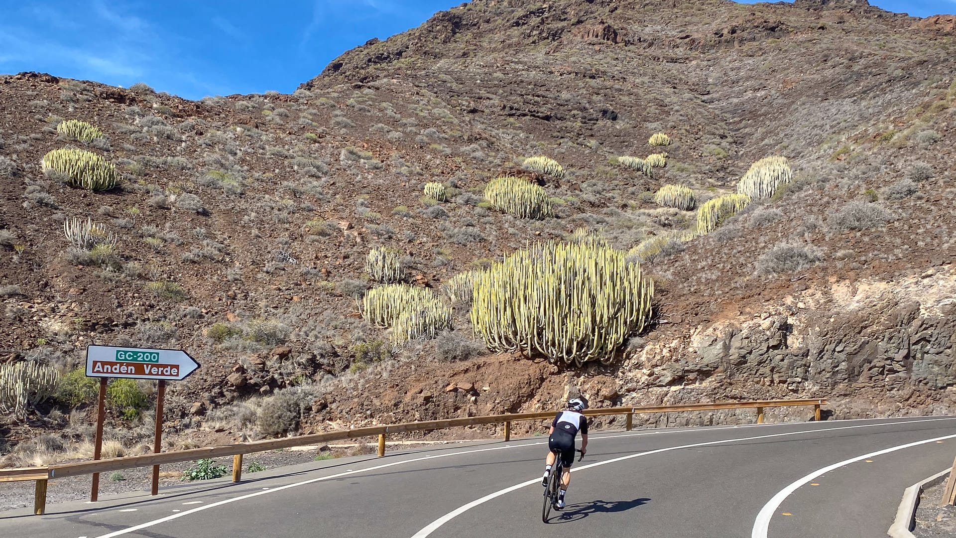 It’s then a fantastic, fast descent down to San Nicolas on a twisting, buttery smooth road with switchbacks galore and an average slope of around -10%. There are some sweeping valley views and in El Hoyo, you pass the unmissable signpost for the world largest cactus!