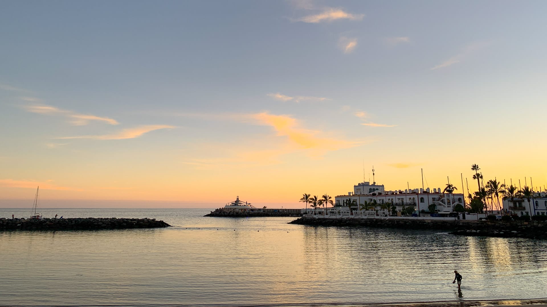 We tried to get an early morning bus (7.08am from arguineguin to Puerto Mogán) but they were full of workers and refused to stop. I recommend a taxi to Puerto Mogán as the ferry starts quite late (arrive at 9.30 putting you in midday sun on VOTT).
