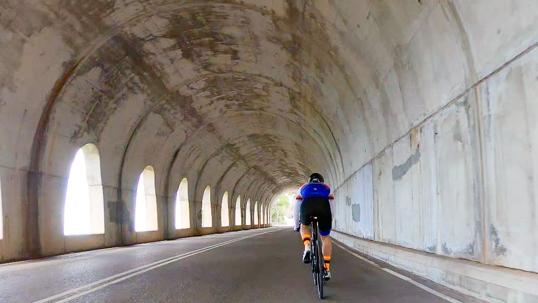 There’s then a fast 5km descent down towards the sea, via a couple of majestic hairpins and several tunnels that are open to daylight on the lefthand side.