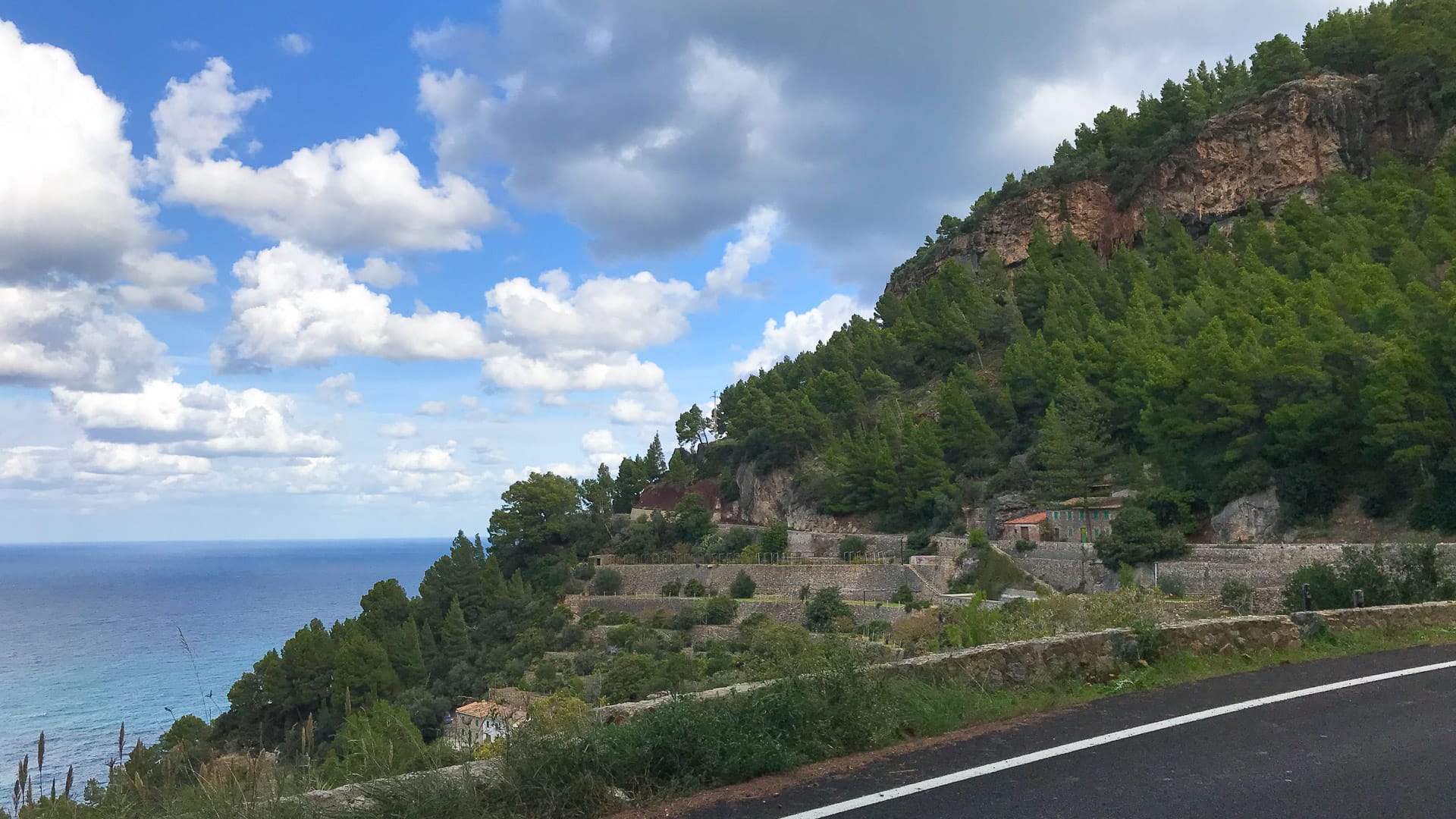 For much of the road between Valldemossa and Deià you get fabulous views down to the sea and across terraced fields and rambling olive trees; we also caught noticeable amounts of wind.
