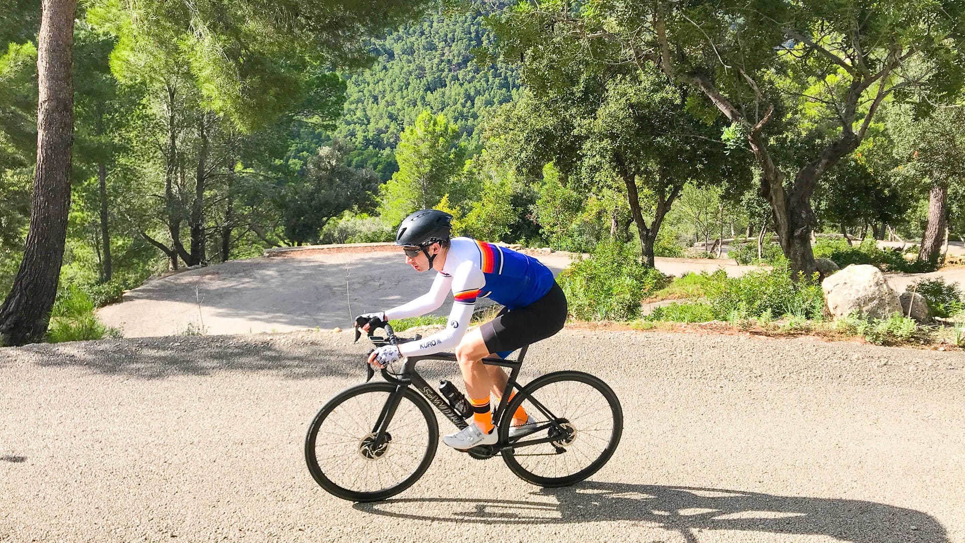As with the beginning of this ride, you feel like you’re in the middle of nowhere; there’s hardly any buildings or development and the road surface was immaculate when we were there. You’re surrounded by jagged grey mountains and light pine forest following a beautiful ribbon of smooth tarmac; it’s this kind of riding that makes people fall in love with Mallorca!