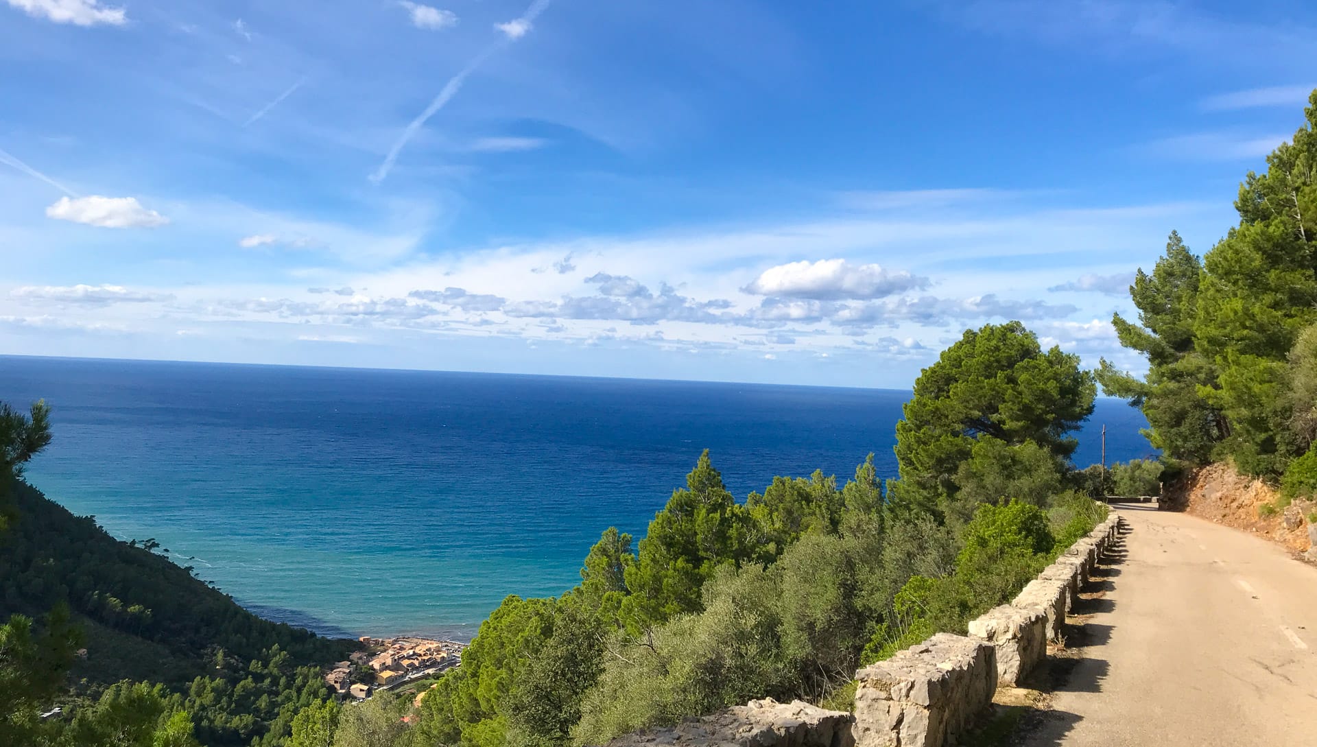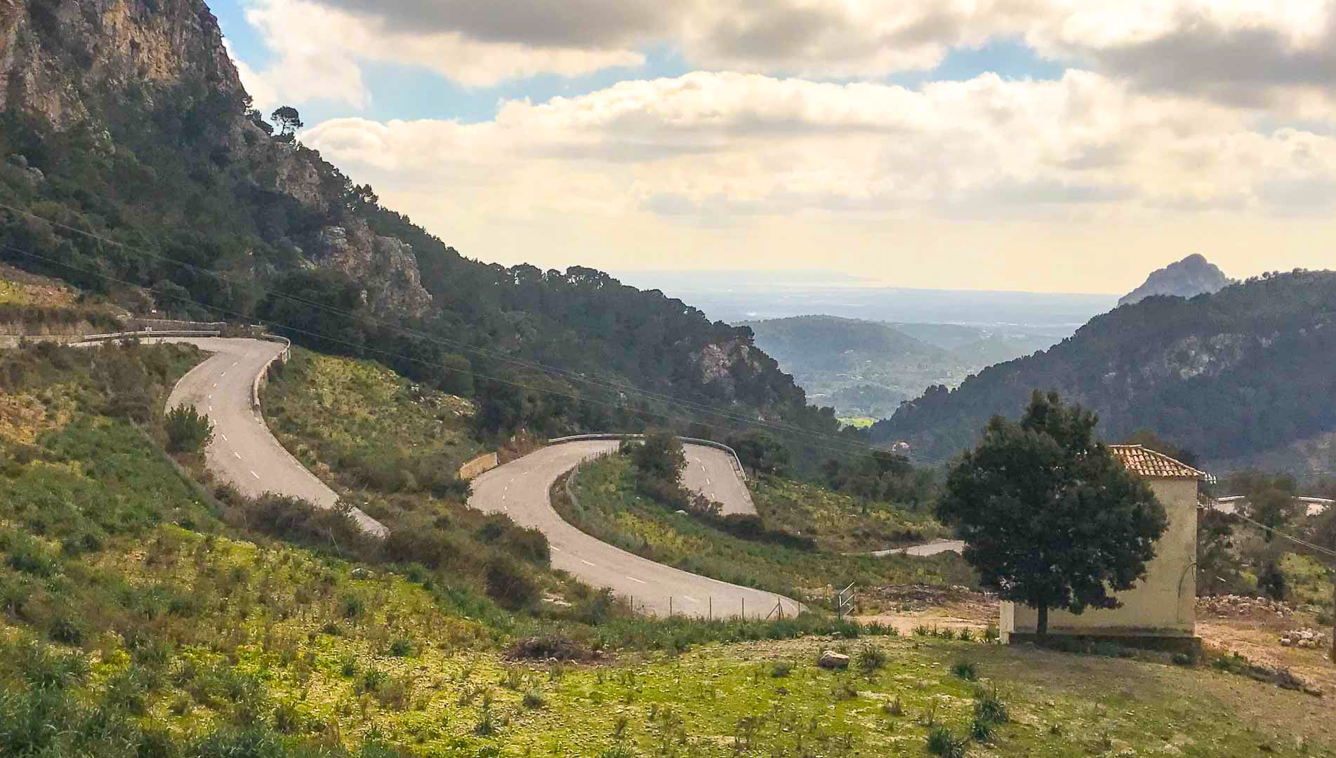 You leave Sóller on a sunny, open road and start climbing through fields, towards the coast. There’s lots of curvy bends and a few hairpins.