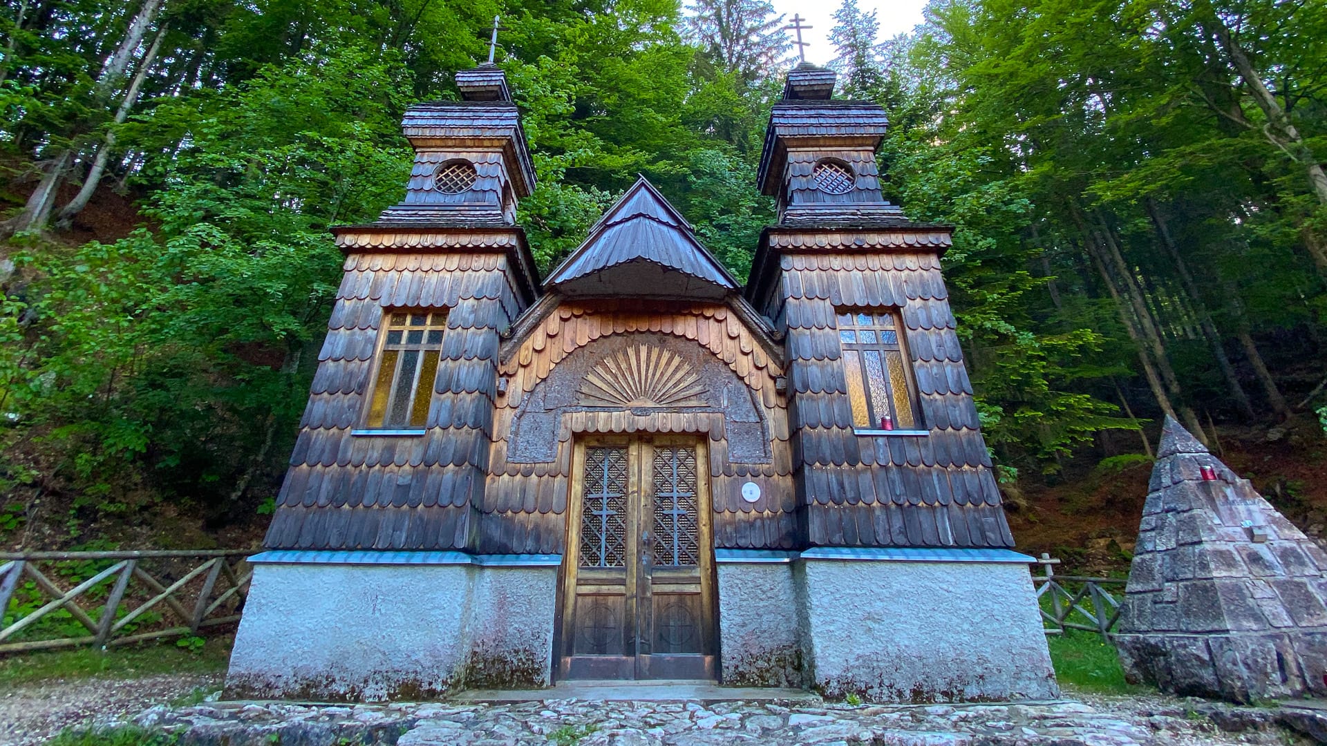 Above bend 8 sits the Rusca Kapelica (Russian Chapel). During World War I, the Austro-Hungarian built the pass road to supply their forces on the Isonzo Front. The road was built and maintained by Russian prisoners-of-war as forced labour. In March 1916 an avalanche buried one of these camps killing around 400 prisoners and 10 of their guards. The pass road was renamed the Russian Road in 2006 to commemorate the tragedy.