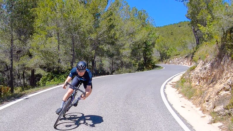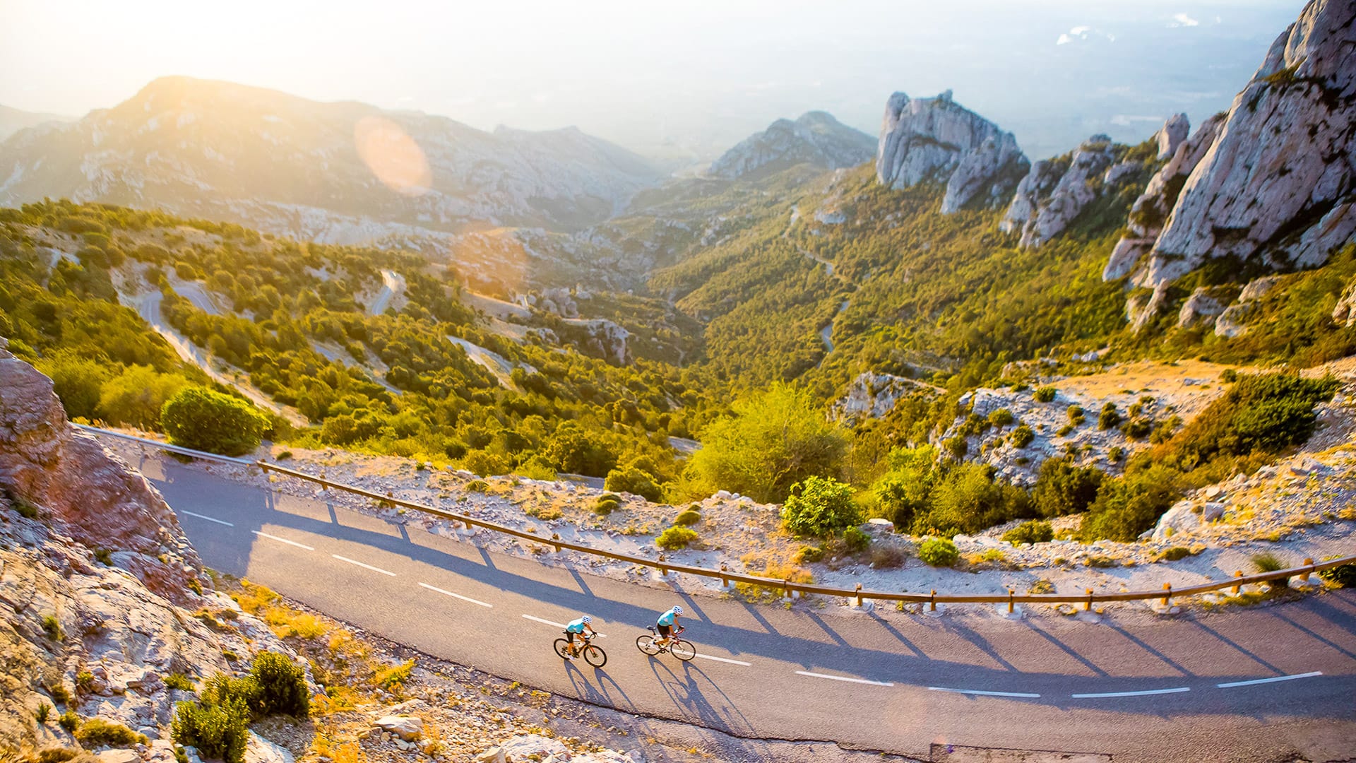 You get bright skies, quiet roads and mountains that rise fast from the coast. Cafés know cyclists, the food’s excellent and the post-ride scene is relaxed.