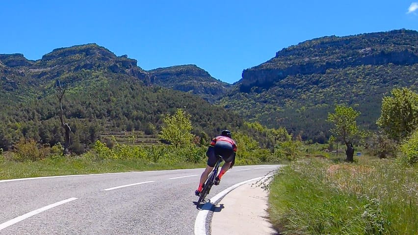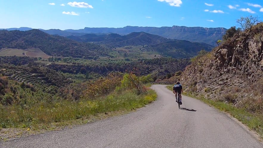 Start and finish in Salou for a 110 kilometre loop with three clear acts: a gentle 30 kilometre warm-up from the coast on wide valley roads; a sublime 50 kilometre loop from Alforja into the dramatic Serra de la Mussara (including a 10 kilometre climb from Vilaplana with an average gradient of 6%); then a fast 30 kilometre ride back to the sea via the Coll d’Alforja (6 kilometres).